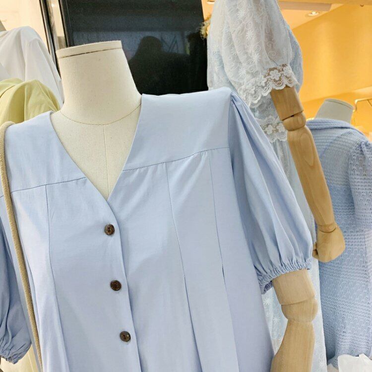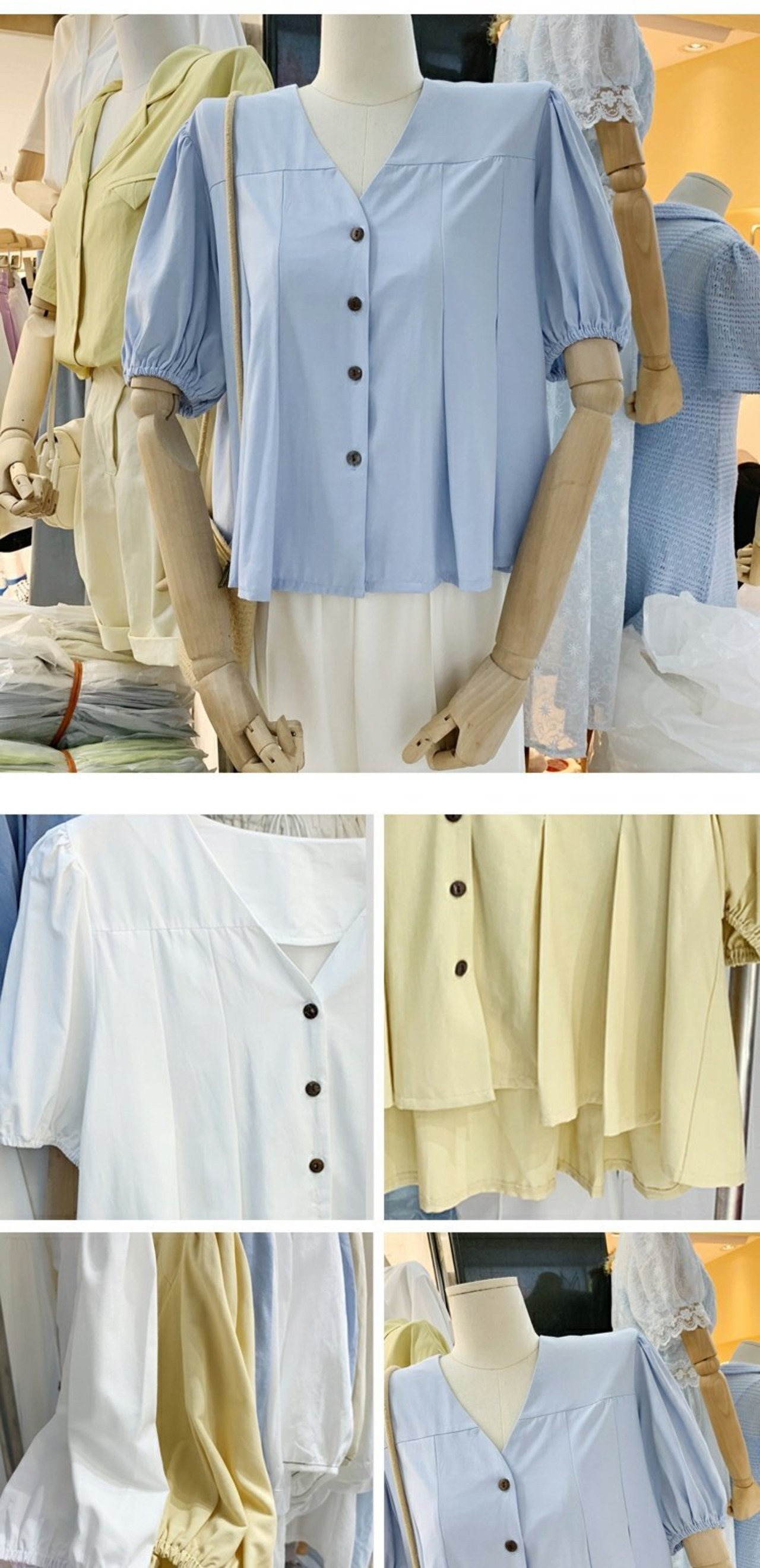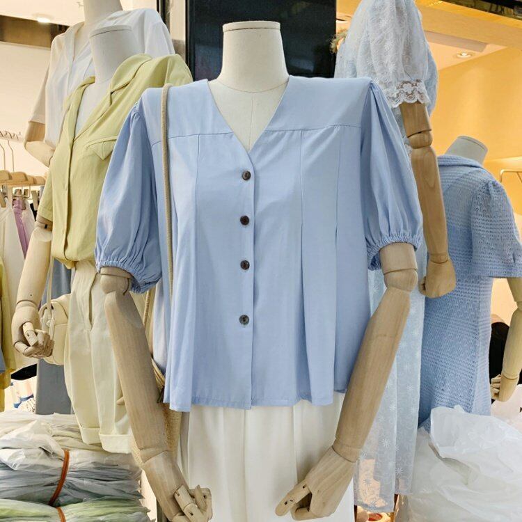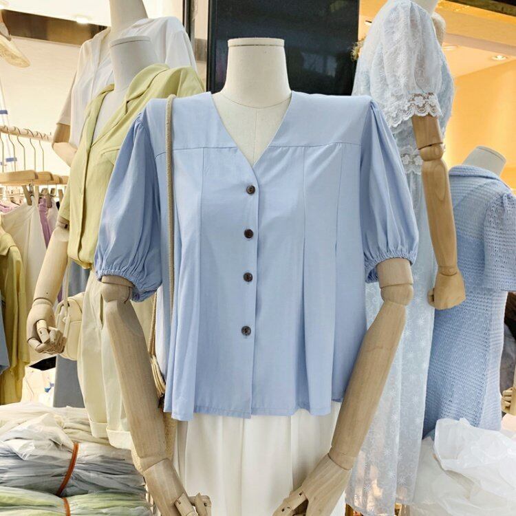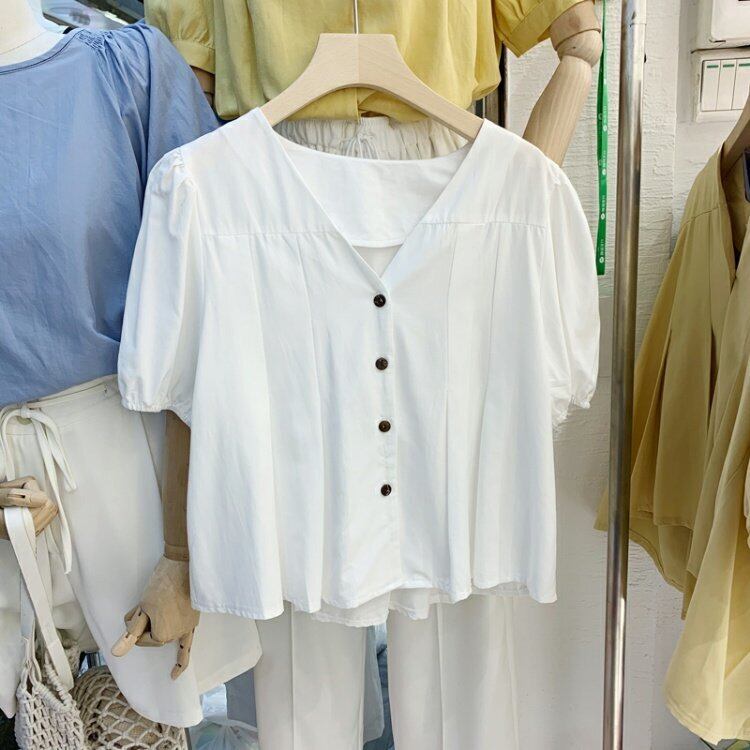 新品 スリーブショート♥カワイイ♥Vネックシャツブラウスカーディガン ⦿韓国 オルチャン K-pop アイドル ジャケット スーツ ワンピース カーディガン ニット フーディー トレーナー キャミソール スカート シャツ ブラウス 5B0007725