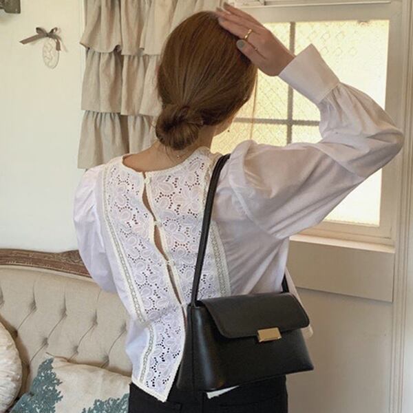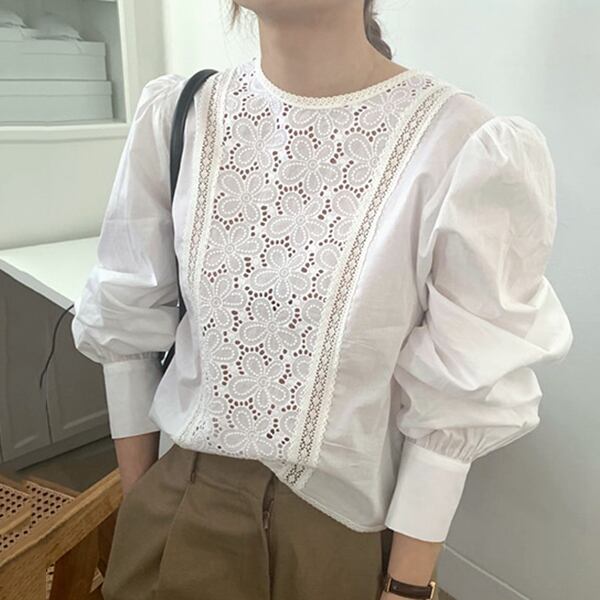 新品 ♡スタンダードラウンドネックレース花柄バックシングルブレスト長袖スリーブシャツブラウス大人女子☆ ロング レトロ フラワーデザイン ⦿韓国 オルチャン K-pop アイドル ジャケット スーツ ワンピース カーディガン ニット フーディー トレーナー キャミソール スカート シャツ ブラウス 5A9758949 | K clothig adult