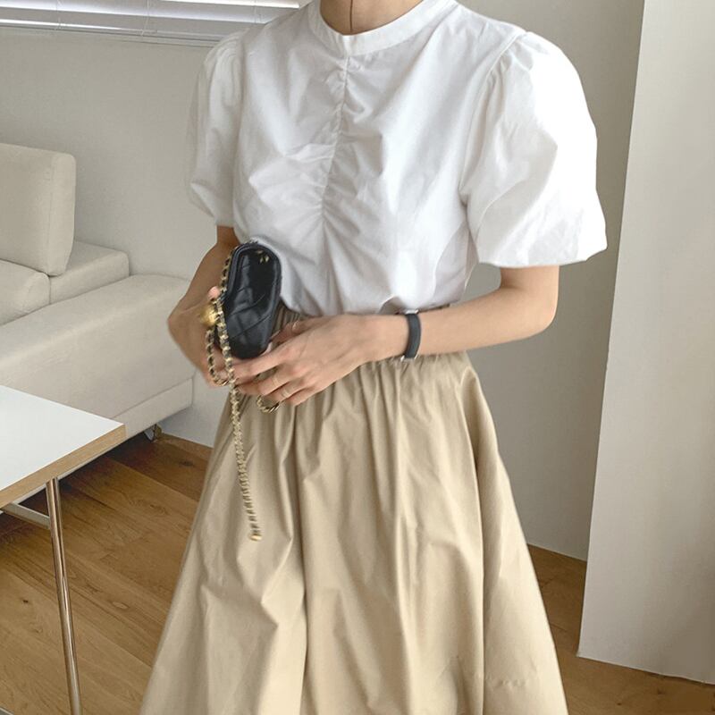 新品 プリーツスリーブシャツブラウスハイウェスト♥カワイイ♥スカート ⦿韓国 オルチャン K-pop アイドル ジャケット スーツ ワンピース カーディガン ニット フーディー トレーナー キャミソール スカート シャツ ブラウス 5A4474172 | K clothig adult