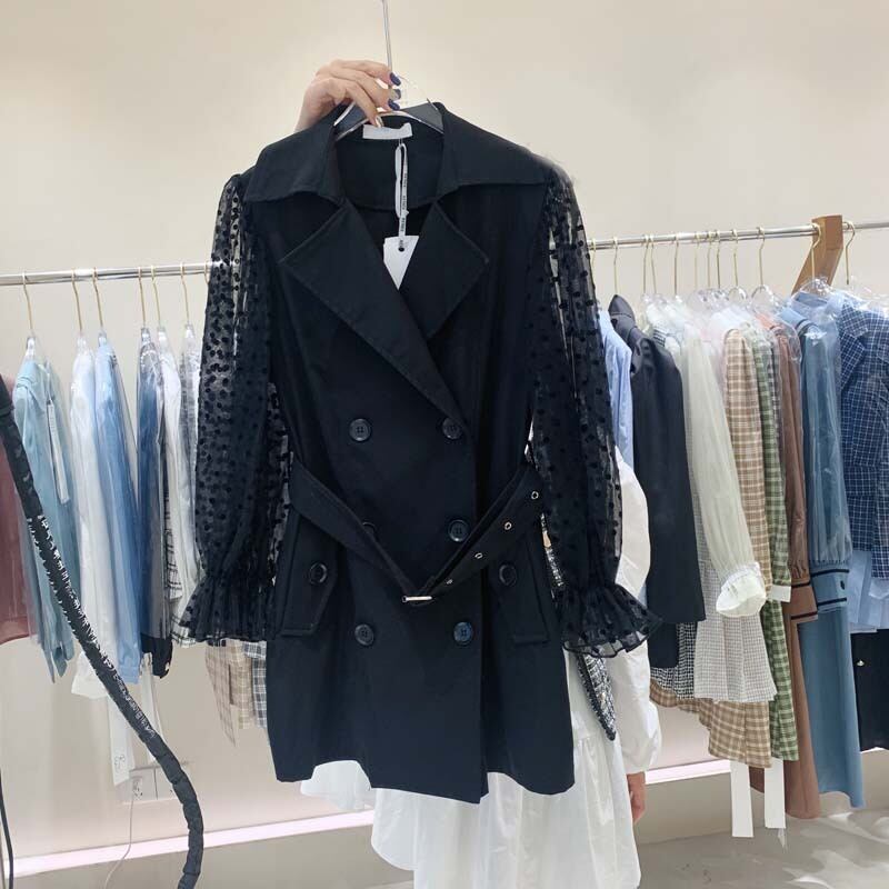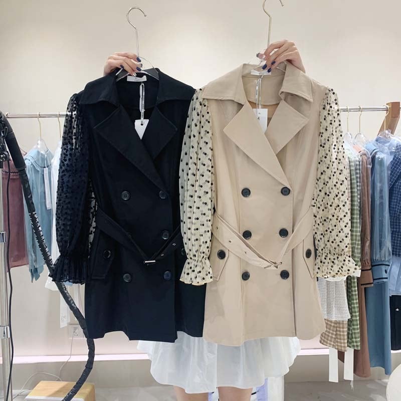 新品 メッシュ水玉スリーブダブルブレストジャケット ⦿韓国 オルチャン K-pop アイドル ジャケット スーツ ワンピース カーディガン ニット フーディー トレーナー キャミソール スカート シャツ ブラウス 5B0121830