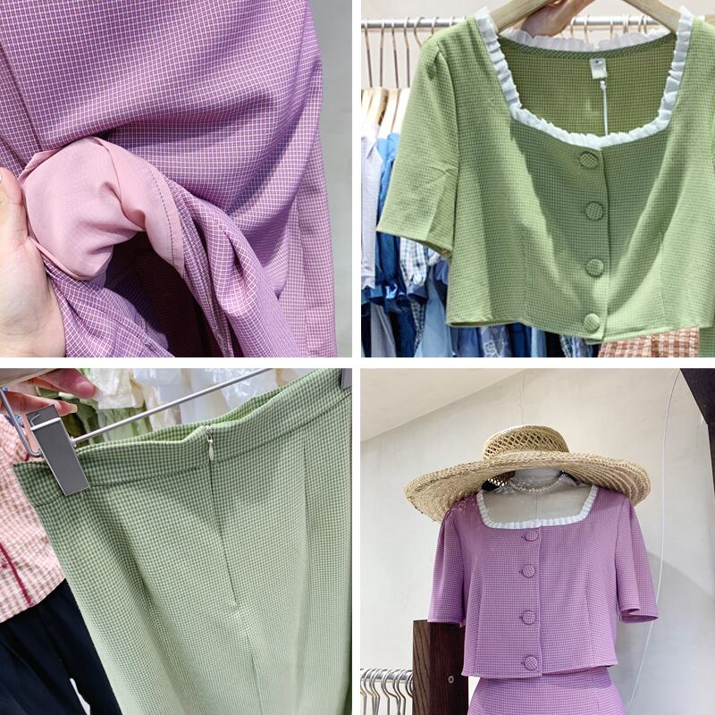 新品 ショートチェック柄カーディガンスリムスカート ⦿韓国 オルチャン K-pop アイドル ジャケット スーツ ワンピース カーディガン ニット フーディー トレーナー キャミソール スカート シャツ ブラウス 5B9916264