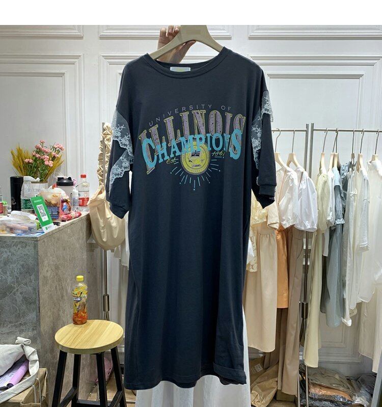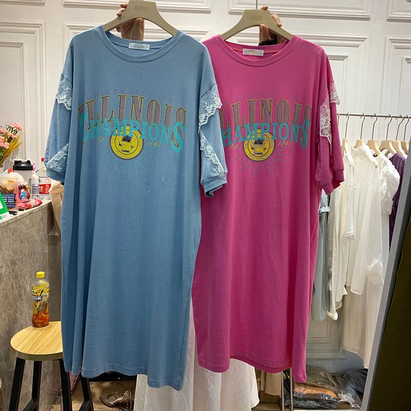 新品 サマールーズプリント柄レース半袖スリーブロングTシャツ ショート 夏物 ステッチ ⦿韓国 オルチャン K-pop アイドル ジャケット スーツ ワンピース カーディガン ニット フーディー トレーナー キャミソール スカート シャツ ブラウス 5B6220430