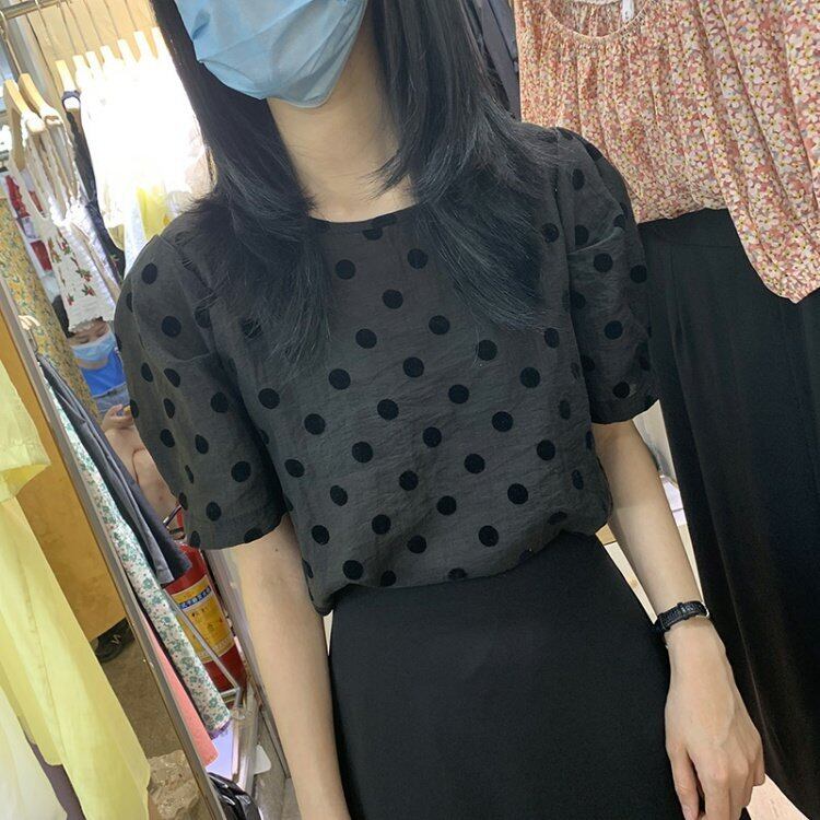 新品 ソリッドカラーカジュアルボタン水玉スリーブラウンドネックシャツブラウス ⦿韓国 オルチャン K-pop アイドル ジャケット スーツ ワンピース カーディガン ニット フーディー トレーナー キャミソール スカート シャツ ブラウス 5B2584697 | K clothig adult