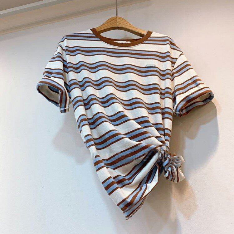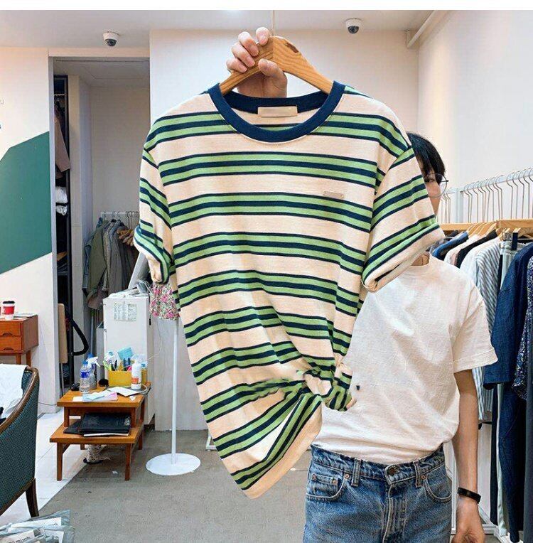 新品 カラーストライプトップス ラウンドネック半袖スリーブTシャツ 大人女子☆ ショート ⦿韓国 オルチャン K-pop アイドル ジャケット スーツ ワンピース カーディガン ニット フーディー トレーナー キャミソール スカート シャツ ブラウス 5B4694687 | K clothig adult
