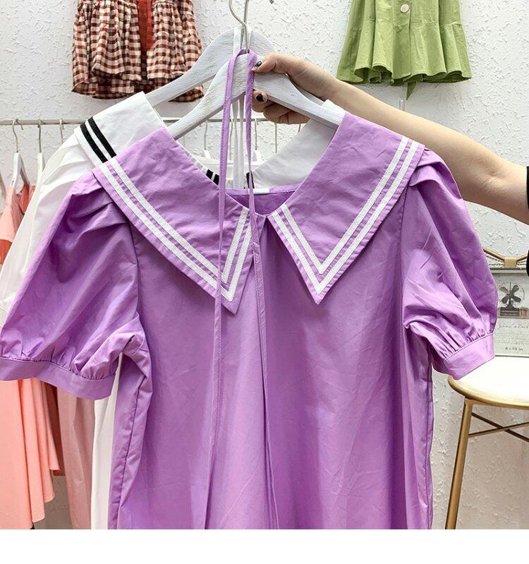 新品 ネイビースリーブスタンダード♥カワイイ♥Aラインスカート レトロ ⦿韓国 オルチャン K-pop アイドル ジャケット スーツ ワンピース カーディガン ニット フーディー トレーナー キャミソール スカート シャツ ブラウス 5B3689356