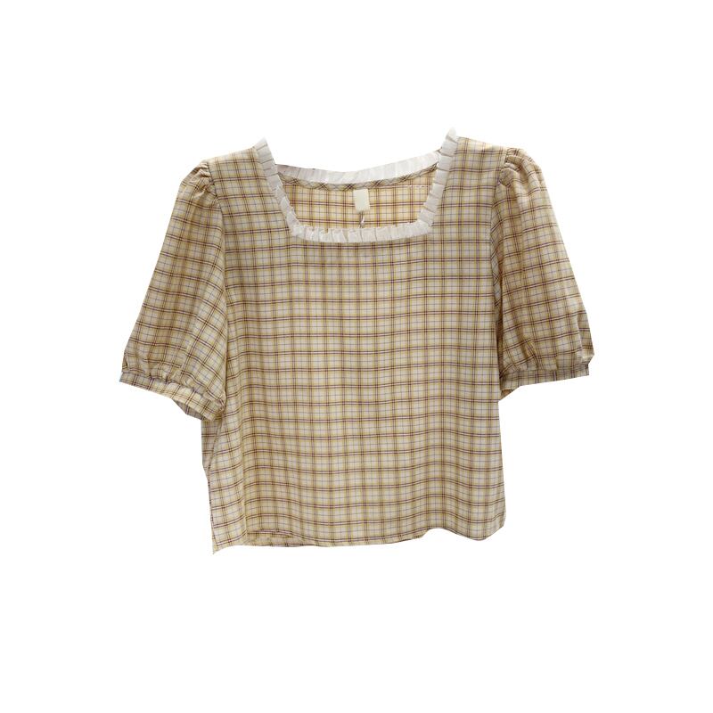 新品 プリーツチェック柄プルオーバー シャツブラウス スクウェア ⦿韓国 オルチャン K-pop アイドル ジャケット スーツ ワンピース カーディガン ニット フーディー トレーナー キャミソール スカート シャツ ブラウス 5B6344882