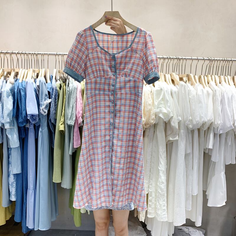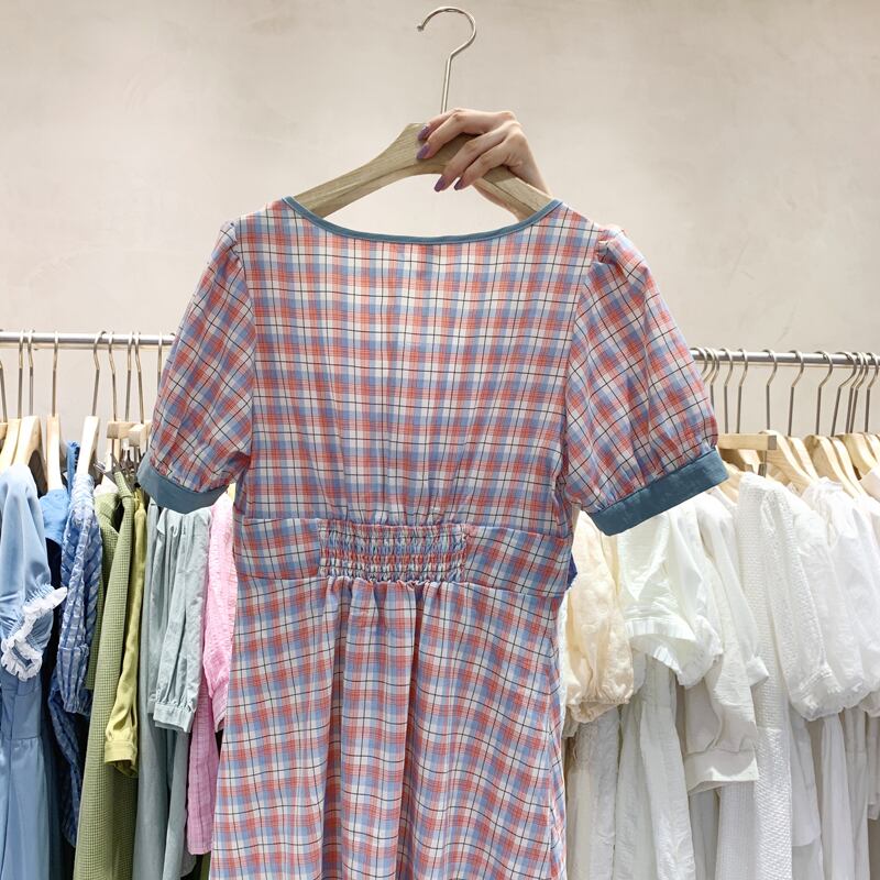新品 サマードレス ワンピースバックストレッチスリム♥カワイイ♥チェック柄 エラスティック 伸縮 夏物 ⦿韓国 オルチャン K-pop アイドル ジャケット スーツ ワンピース カーディガン ニット フーディー トレーナー キャミソール スカート シャツ ブラウス 5B4681968