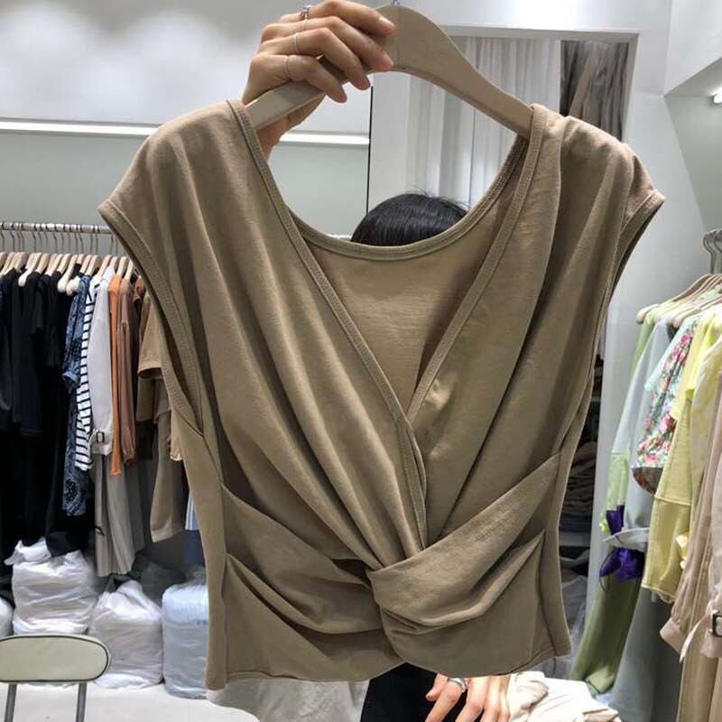 新品 サマーソリッド カラーVネックプリーツノースリーブクロスTシャツ トップス スウィート 夏物 ソリッドカラー ⦿韓国 オルチャン K-pop アイドル ジャケット スーツ ワンピース カーディガン ニット フーディー トレーナー キャミソール スカート シャツ ブラウス 5B9908232 | K clothig adult