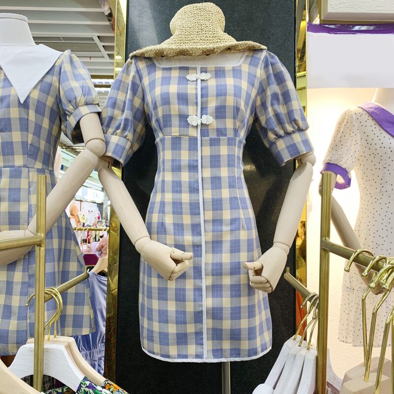 新品 サマードレス ワンピーススタンダード♡スリーブチェック柄 レトロ 夏物 スクウェア ⦿韓国 オルチャン K-pop アイドル ジャケット スーツ ワンピース カーディガン ニット フーディー トレーナー キャミソール スカート シャツ ブラウス 5B6942334