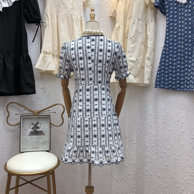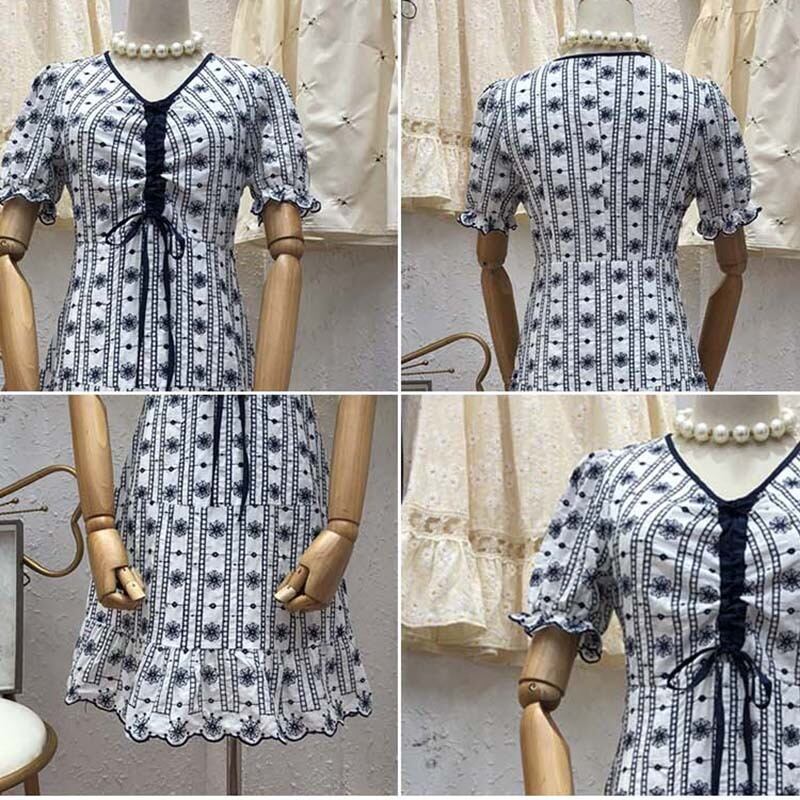 新品 サマースリーブスカート ブルー白スタンダードVネックドレス ワンピース大人女子☆ ホワイト レッド レトロ 刺繍 夏物 ⦿韓国 オルチャン K-pop アイドル ジャケット スーツ ワンピース カーディガン ニット フーディー トレーナー キャミソール スカート シャツ ブラウス 5B4616137