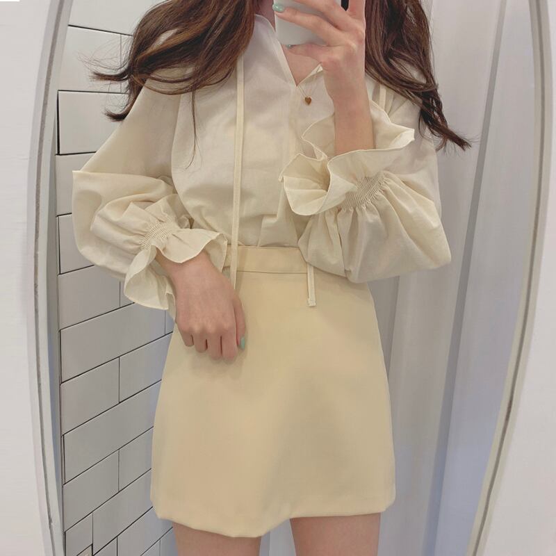 新品 Vネックスリーブシャツブラウスソリッド カラー今年流行☆スカート レッド エレガント ソリッドカラー ⦿韓国 オルチャン K-pop アイドル ジャケット スーツ ワンピース カーディガン ニット フーディー トレーナー キャミソール スカート シャツ ブラウス 5A9834596