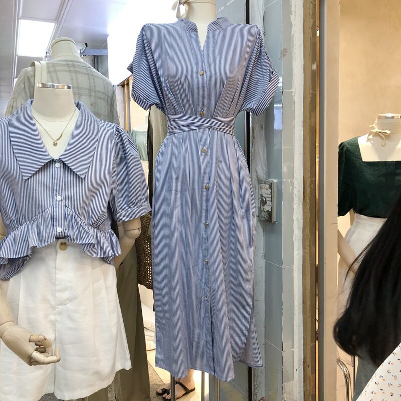 新品 サマーストライプVネック★ドレス ワンピース スウィート 夏物 ⦿韓国 オルチャン K-pop アイドル ジャケット スーツ ワンピース カーディガン ニット フーディー トレーナー キャミソール スカート シャツ ブラウス 5B3203359