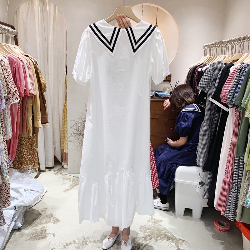 新品 ネイビーブルーロングプルオーバー ⦿韓国 オルチャン K-pop アイドル ジャケット スーツ ワンピース カーディガン ニット フーディー トレーナー キャミソール スカート シャツ ブラウス 5B9532241