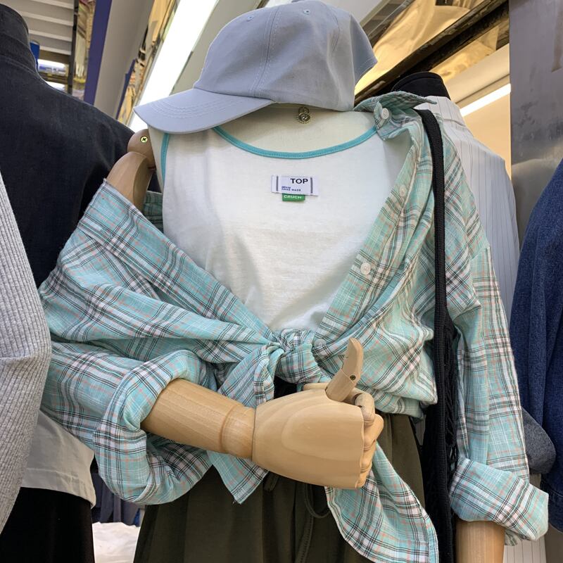 新品 チェック柄シャツブラウスストレッチ★ショートパンツ ロング コットン エラスティック 伸縮 ⦿韓国 オルチャン K-pop アイドル ジャケット スーツ ワンピース カーディガン ニット フーディー トレーナー キャミソール スカート シャツ ブラウス 5B7549652