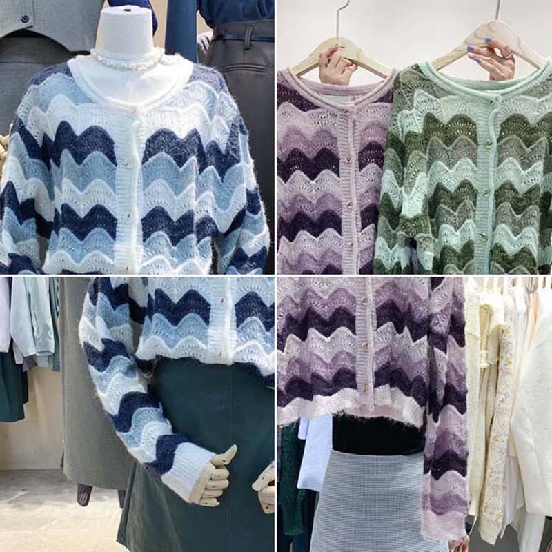 新品 オータムラウンドネックストライプセーター カーディガン 秋物 ⦿韓国 オルチャン K-pop アイドル ジャケット スーツ ワンピース カーディガン ニット フーディー トレーナー キャミソール スカート シャツ ブラウス 5B9985671 | K clothig adult