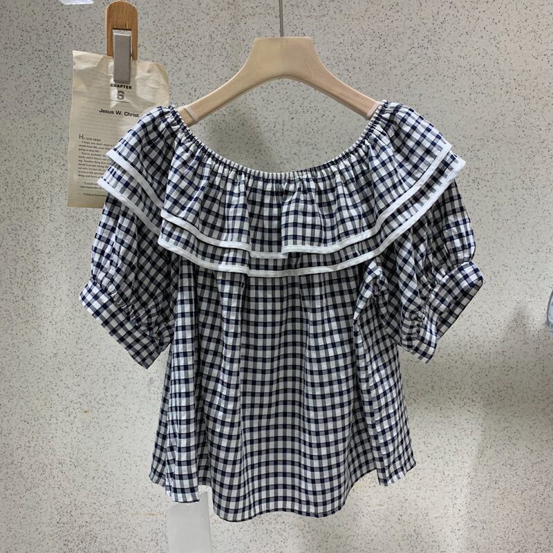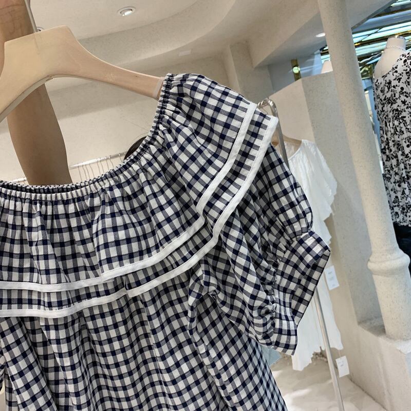 新品 サマーチェック柄ストレッチラウンドネックスリーブトップス エラスティック 伸縮 夏物 ステッチ ⦿韓国 オルチャン K-pop アイドル ジャケット スーツ ワンピース カーディガン ニット フーディー トレーナー キャミソール スカート シャツ ブラウス 5B6570673