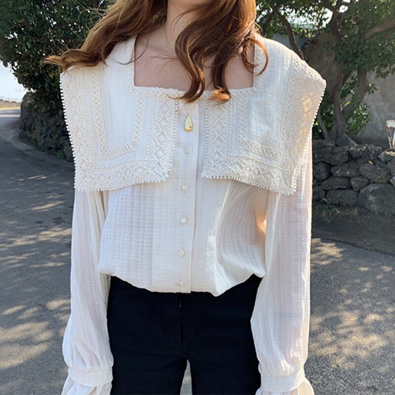 新品 ♡花柄レースロングスリーブシャツブラウス スウィート フラワーデザイン ⦿韓国 オルチャン K-pop アイドル ジャケット スーツ ワンピース カーディガン ニット フーディー トレーナー キャミソール スカート シャツ ブラウス 5A0767087 | K clothig adult