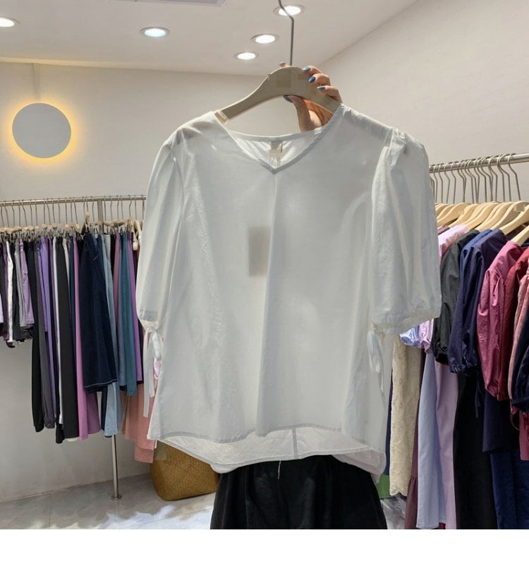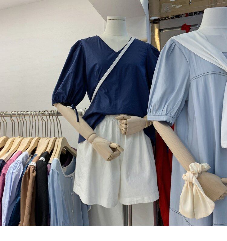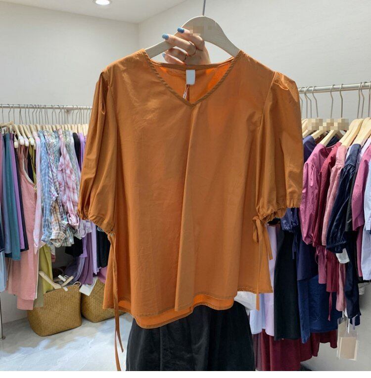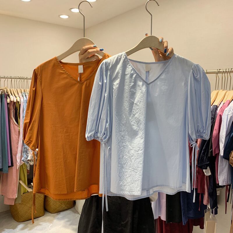 新品 サマーソリッド カラーVネックカジュアルスリーブシャツブラウス 夏物 ソリッドカラー ⦿韓国 オルチャン K-pop アイドル ジャケット スーツ ワンピース カーディガン ニット フーディー トレーナー キャミソール スカート シャツ ブラウス 5B3763054