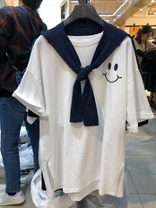 新品 カジュアルTシャツ ネイビートップス ⦿韓国 オルチャン K-pop アイドル ジャケット スーツ ワンピース カーディガン ニット フーディー トレーナー キャミソール スカート シャツ ブラウス 5B4292915 | K clothig adult