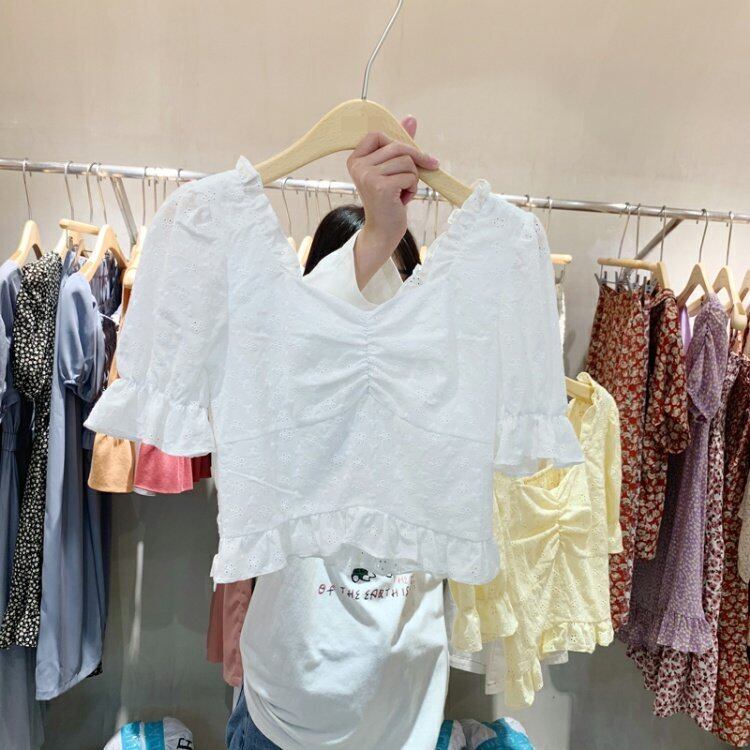 新品 ショートスリム半袖スリーブトップス レッド コットン 刺繍 スクウェア ⦿韓国 オルチャン K-pop アイドル ジャケット スーツ ワンピース カーディガン ニット フーディー トレーナー キャミソール スカート シャツ ブラウス 5B3235080