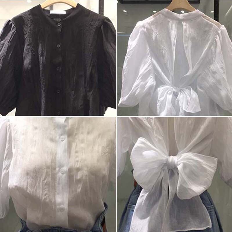 新品 ♥カワイイ♥バックリボントップス シャツブラウス スウィート ⦿韓国 オルチャン K-pop アイドル ジャケット スーツ ワンピース カーディガン ニット フーディー トレーナー キャミソール スカート シャツ ブラウス 5B5820086