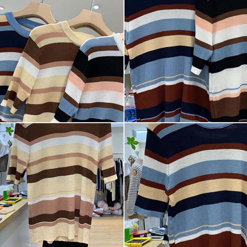 新品 オータムラウンドネックスリーブストライプニットスリム♥カワイイ♥プルオーバー トップス 秋物 ⦿韓国 オルチャン K-pop アイドル ジャケット スーツ ワンピース カーディガン ニット フーディー トレーナー キャミソール スカート シャツ ブラウス 5B7160426 | K clothig adult