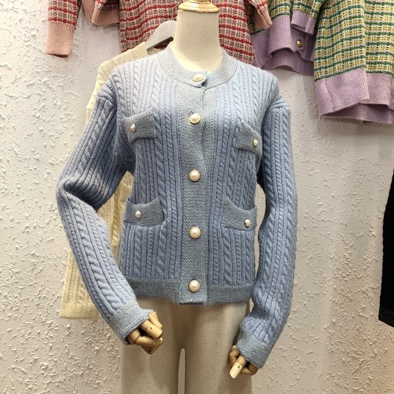 新品 ラウンドネックパールバックルカーディガンセーター ジャケット 真珠 ⦿韓国 オルチャン K-pop アイドル ジャケット スーツ ワンピース カーディガン ニット フーディー トレーナー キャミソール スカート シャツ ブラウス 5B0193888 | K clothig adult