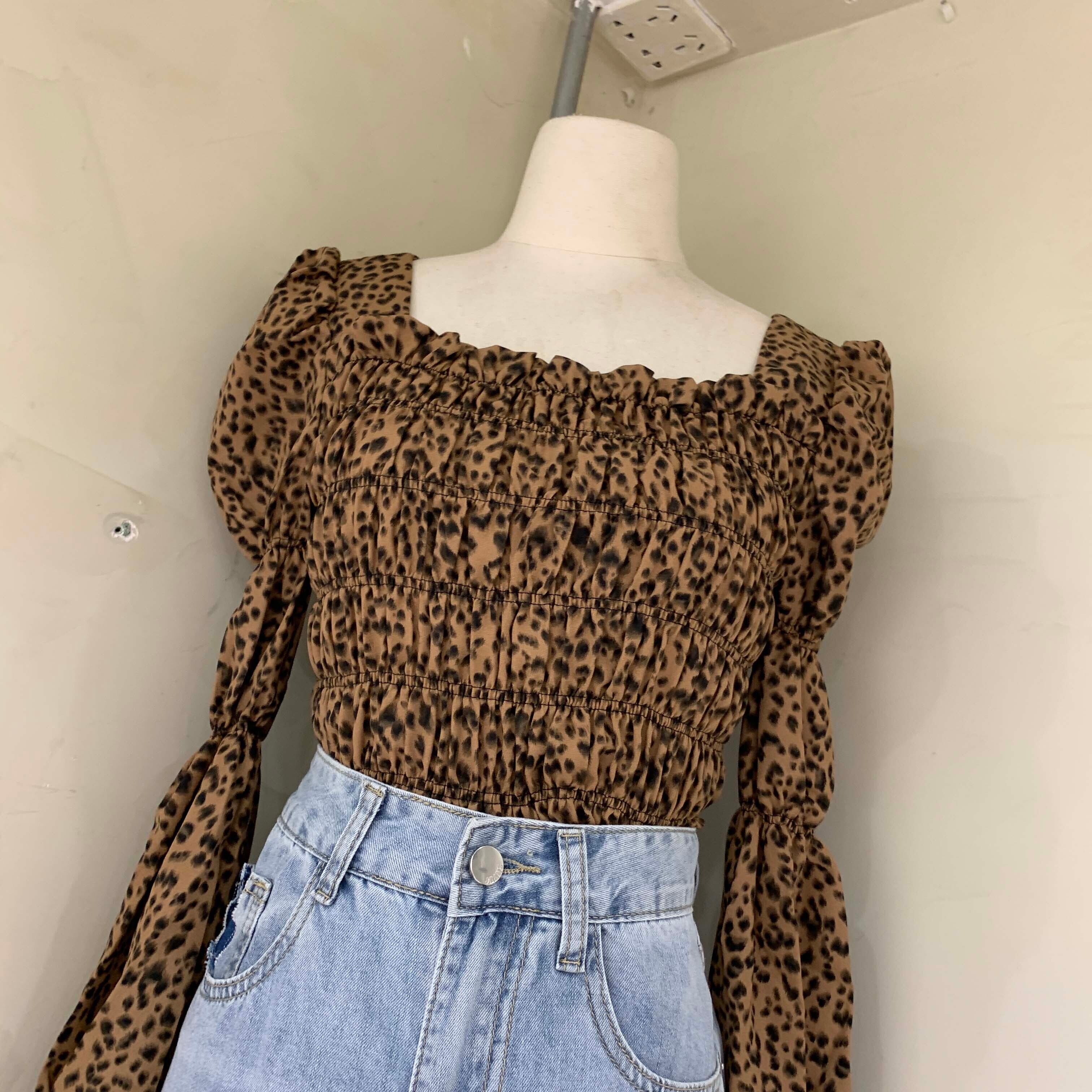 新品 プリーツストレッチレオパードトップス ロング エラスティック 伸縮 スクウェア ⦿韓国 オルチャン K-pop アイドル ジャケット スーツ ワンピース カーディガン ニット フーディー トレーナー キャミソール スカート シャツ ブラウス 5B6353377