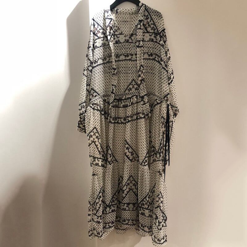 新品 スタンダードプリント柄♥カワイイ♥Vネックロング大人女子☆ レトロ ⦿韓国 オルチャン K-pop アイドル ジャケット スーツ ワンピース カーディガン ニット フーディー トレーナー キャミソール スカート シャツ ブラウス 5A8470883