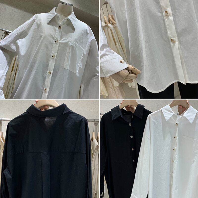 新品 ソリッド カラーシャツブラウス ロング コットン ソリッドカラー ⦿韓国 オルチャン K-pop アイドル ジャケット スーツ ワンピース カーディガン ニット フーディー トレーナー キャミソール スカート シャツ ブラウス 5B2541292