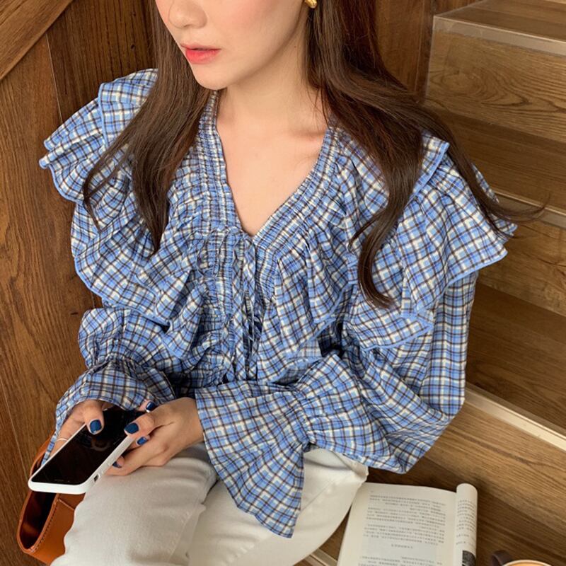 新品 スタンダードカラーチェック柄Vネック★スリーブシャツブラウス大人女子☆ レッド レトロ ⦿韓国 オルチャン K-pop アイドル ジャケット スーツ ワンピース カーディガン ニット フーディー トレーナー キャミソール スカート シャツ ブラウス 5A5512889 | K clothig adult