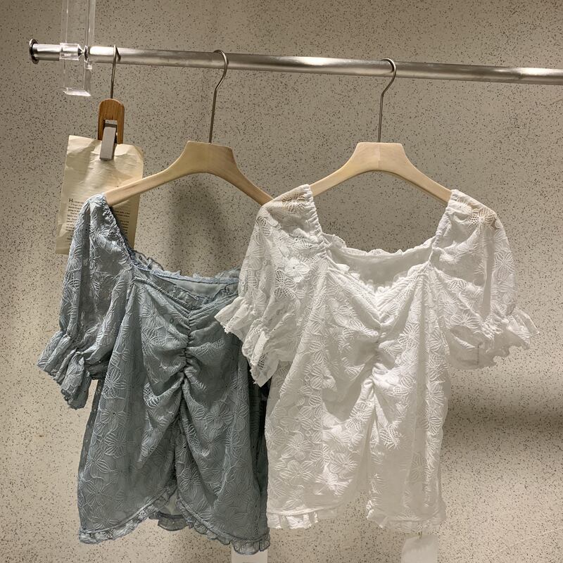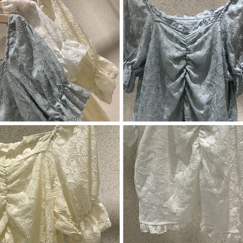 新品 スリーブレースメッシュ刺繍トップス ⦿韓国 オルチャン K-pop アイドル ジャケット スーツ ワンピース カーディガン ニット フーディー トレーナー キャミソール スカート シャツ ブラウス 5B9465699