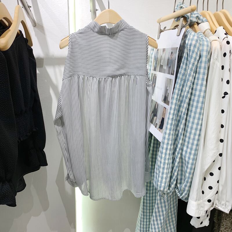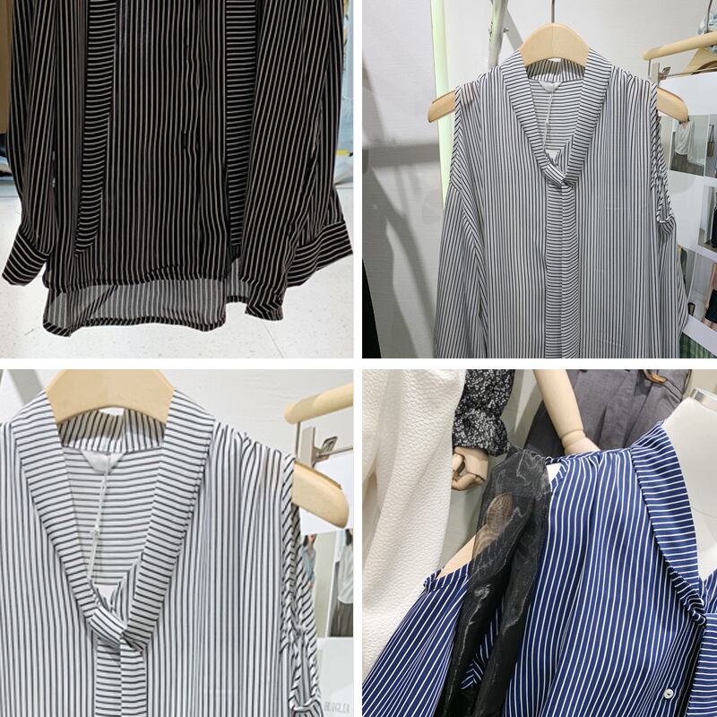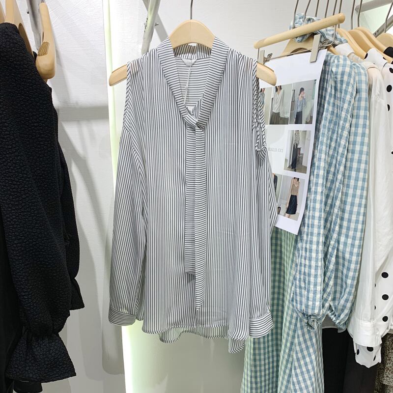 新品 オータムストライプシャツブラウスカーディガン ロング 秋物 ⦿韓国 オルチャン K-pop アイドル ジャケット スーツ ワンピース カーディガン ニット フーディー トレーナー キャミソール スカート シャツ ブラウス 5B7867685