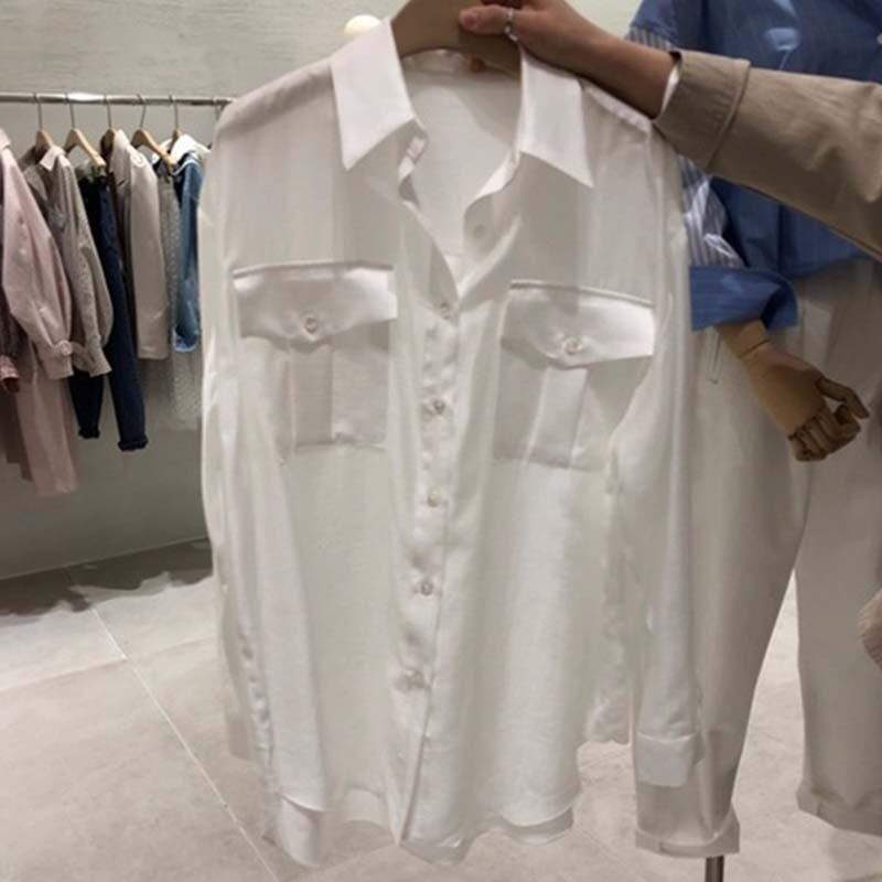 新品 オータムポケットソリッド カラーシャツブラウスブラウス スウィート 秋物 ソリッドカラー ⦿韓国 オルチャン K-pop アイドル ジャケット スーツ ワンピース カーディガン ニット フーディー トレーナー キャミソール スカート シャツ ブラウス 5B7816110 | K clothig adult