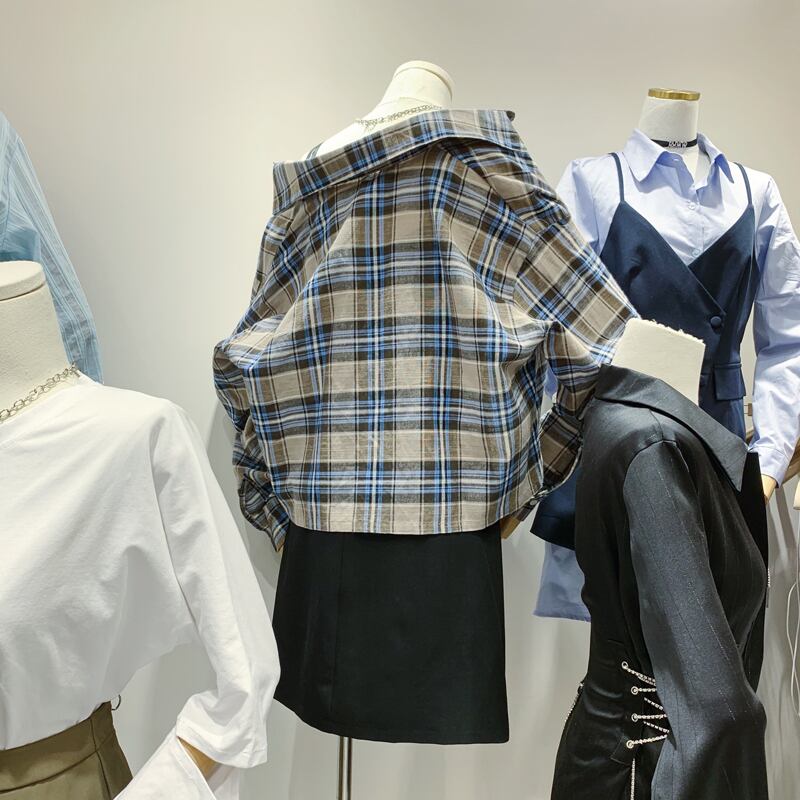 新品 オータムチェック柄ショートシャツブラウスジャケット ドレス ワンピース 秋物 ⦿韓国 オルチャン K-pop アイドル ジャケット スーツ ワンピース カーディガン ニット フーディー トレーナー キャミソール スカート シャツ ブラウス 5B0745545