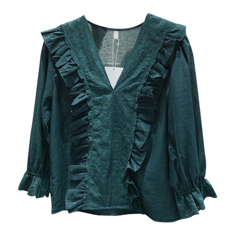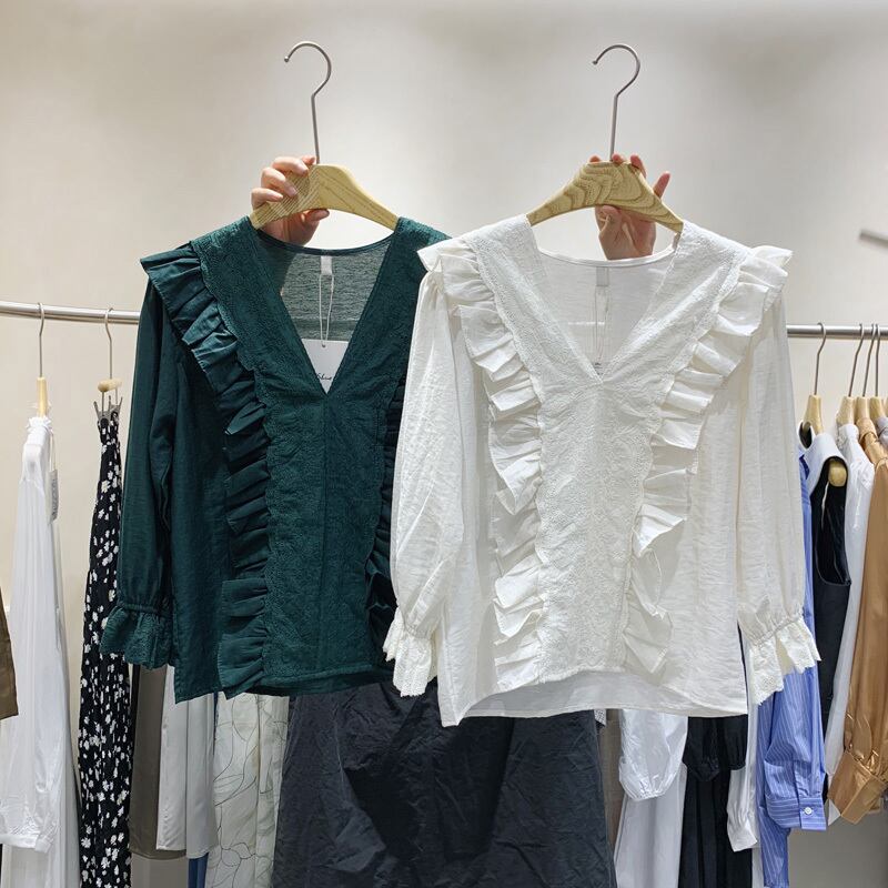新品 ソリッド カラーVネックプルオーバー シャツブラウス ソリッドカラー ⦿韓国 オルチャン K-pop アイドル ジャケット スーツ ワンピース カーディガン ニット フーディー トレーナー キャミソール スカート シャツ ブラウス 5B8013856