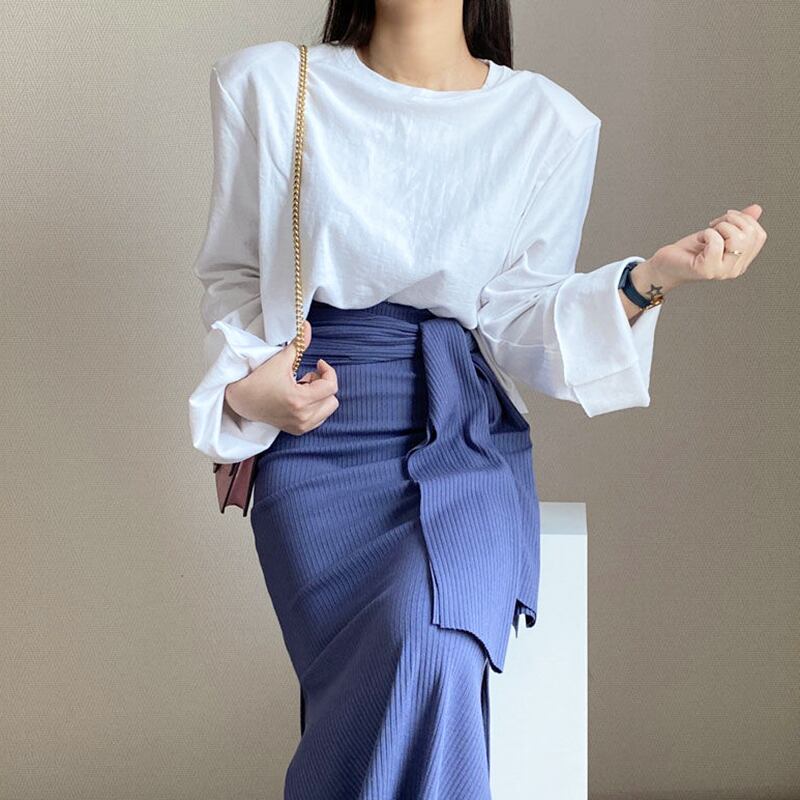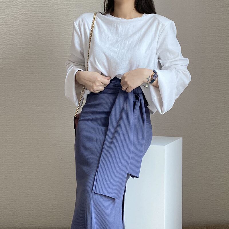 新品 スタンダードラウンドネックTシャツ ハイウェストニットスカート ロング レトロ ⦿韓国 オルチャン K-pop アイドル ジャケット スーツ ワンピース カーディガン ニット フーディー トレーナー キャミソール スカート シャツ ブラウス 5A7260626 | K clothig adult