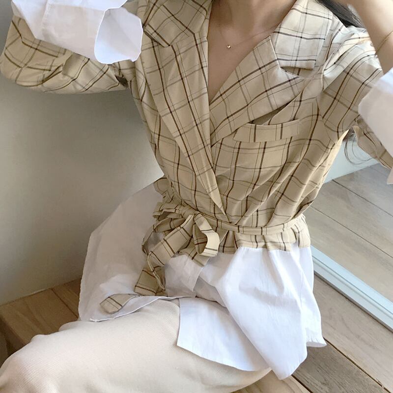 新品 ♡★チェック柄シャツブラウストップス 大人女子☆ ステッチ ⦿韓国 オルチャン K-pop アイドル ジャケット スーツ ワンピース カーディガン ニット フーディー トレーナー キャミソール スカート シャツ ブラウス 5A3557167