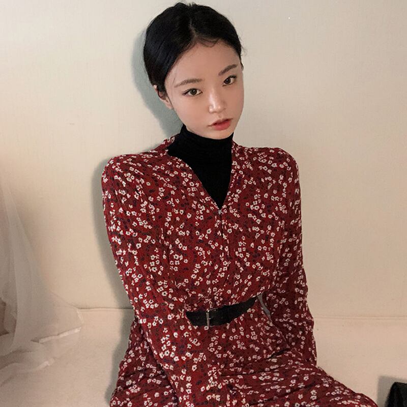 新品 花柄♥カワイイ♥Vネック★ロングシフォン エレガント フラワーデザイン ⦿韓国 オルチャン K-pop アイドル ジャケット スーツ ワンピース カーディガン ニット フーディー トレーナー キャミソール スカート シャツ ブラウス 5A7881711