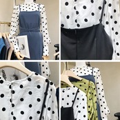 新品 水玉シャツブラウス ⦿韓国 オルチャン K-pop アイドル ジャケット スーツ ワンピース カーディガン ニット フーディー トレーナー キャミソール スカート シャツ ブラウス 5B6022804