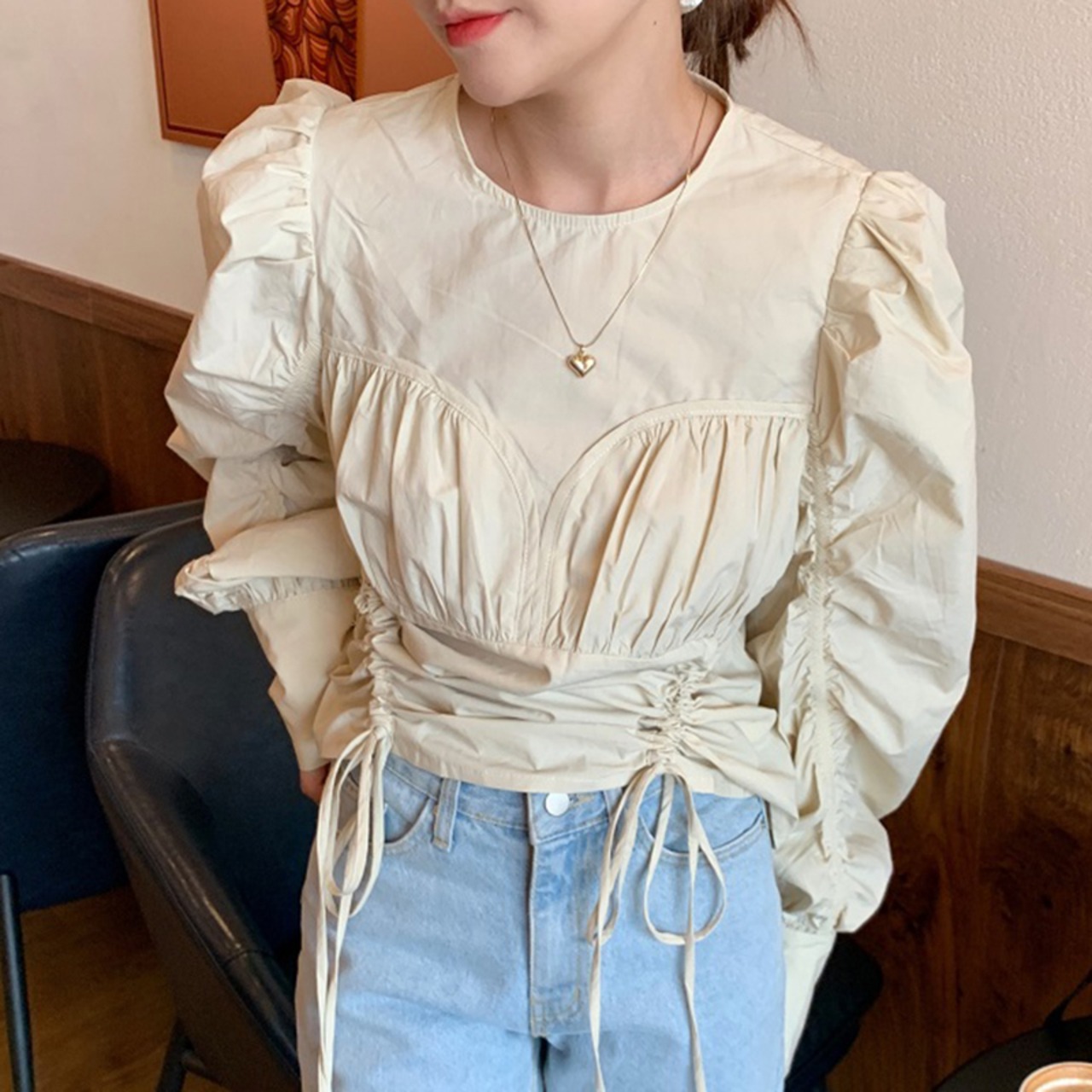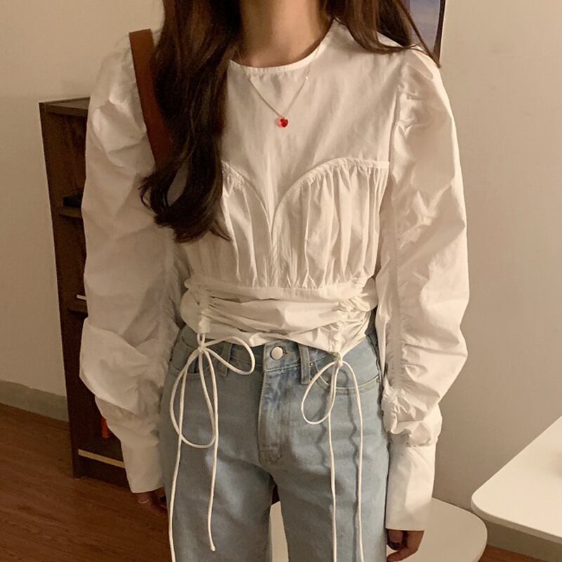 新品 スタンダードラウンドネックギャザー★スリーブシャツブラウス大人女子☆ レトロ ステッチ ⦿韓国 オルチャン K-pop アイドル ジャケット スーツ ワンピース カーディガン ニット フーディー トレーナー キャミソール スカート シャツ ブラウス 5A7609767 | K clothig adult