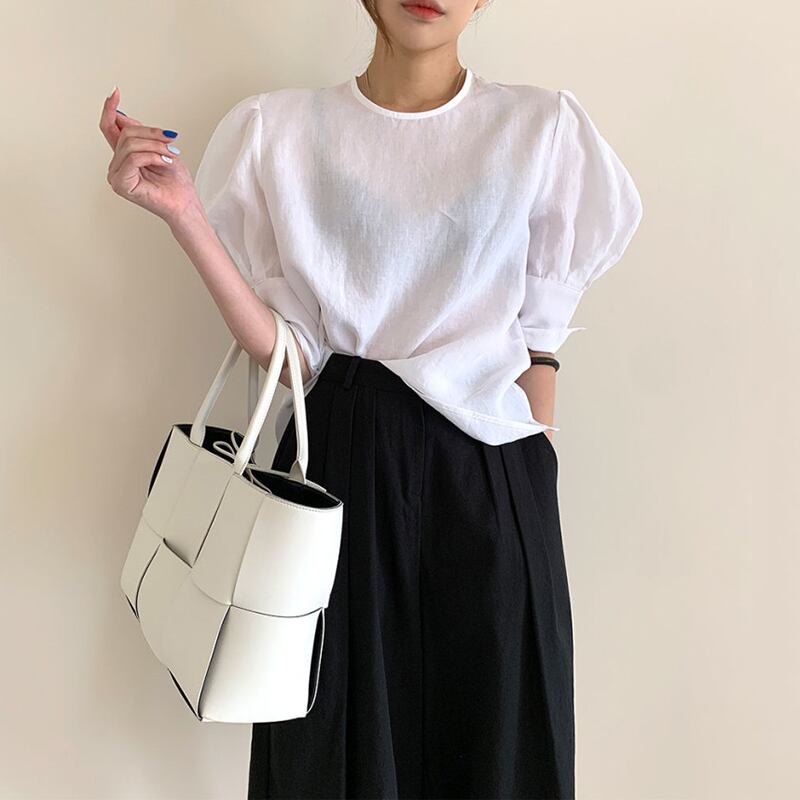 新品 ラウンドネックスリーブシャツブラウススリムスカート 大人女子☆ ⦿韓国 オルチャン K-pop アイドル ジャケット スーツ ワンピース カーディガン ニット フーディー トレーナー キャミソール スカート シャツ ブラウス 5A9445319 | K clothig adult