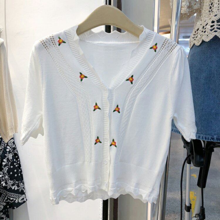 新品 カラーVネック刺繍パターントップス ピュア ⦿韓国 オルチャン K-pop アイドル ジャケット スーツ ワンピース カーディガン ニット フーディー トレーナー キャミソール スカート シャツ ブラウス 5B1963590