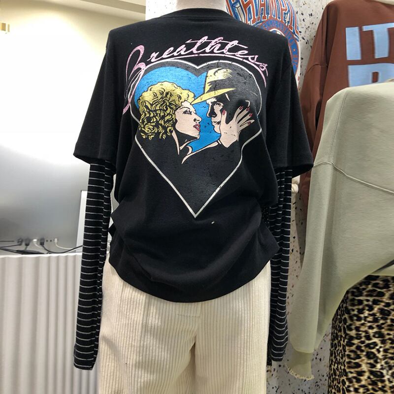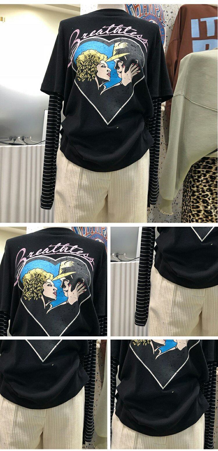 新品 プリントTシャツ ストライプラウンドネックトップス ロング ⦿韓国 オルチャン K-pop アイドル ジャケット スーツ ワンピース カーディガン ニット フーディー トレーナー キャミソール スカート シャツ ブラウス 5B7186411 | K clothig adult