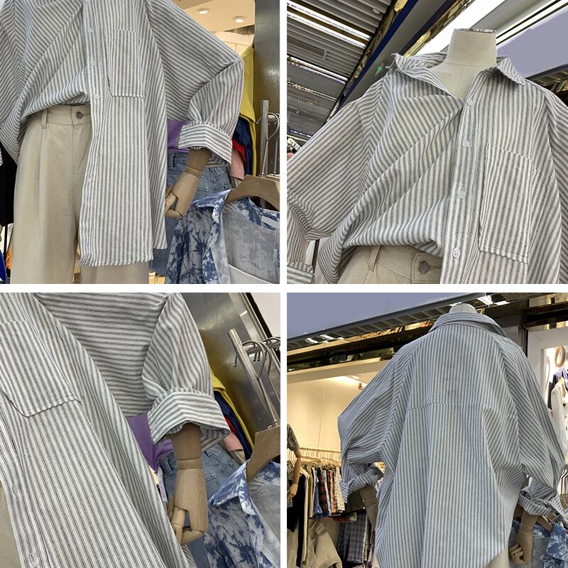 新品 ストライプシャツブラウス ロング ⦿韓国 オルチャン K-pop アイドル ジャケット スーツ ワンピース カーディガン ニット フーディー トレーナー キャミソール スカート シャツ ブラウス 5B2743173