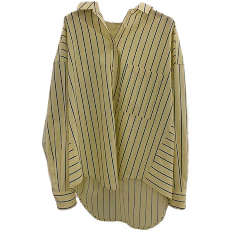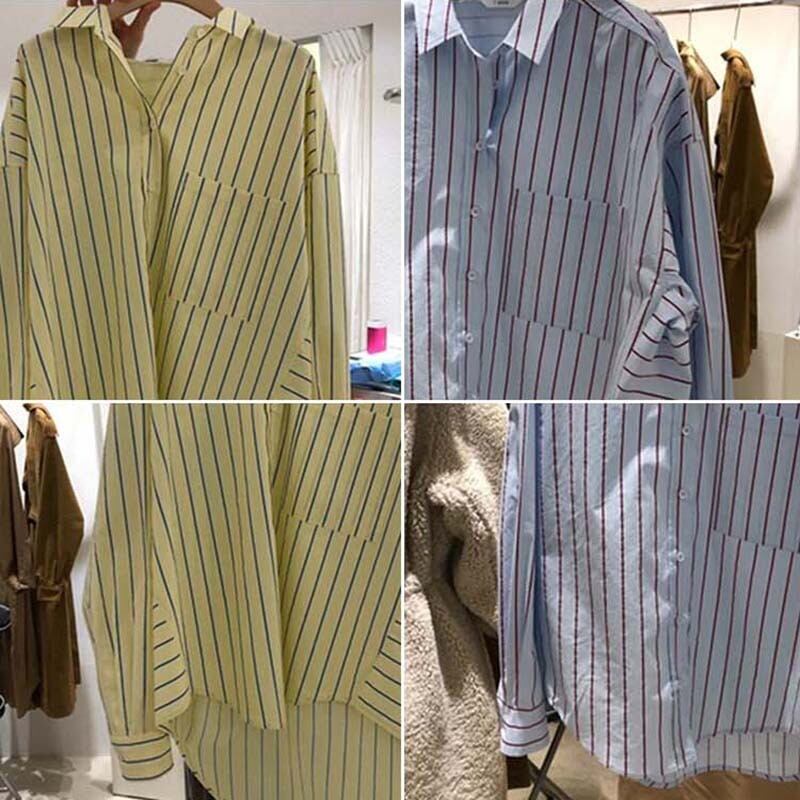 新品 オータムストライプルーズ長袖スリーブシャツブラウス ロング 秋物 ⦿韓国 オルチャン K-pop アイドル ジャケット スーツ ワンピース カーディガン ニット フーディー トレーナー キャミソール スカート シャツ ブラウス 5B0741450