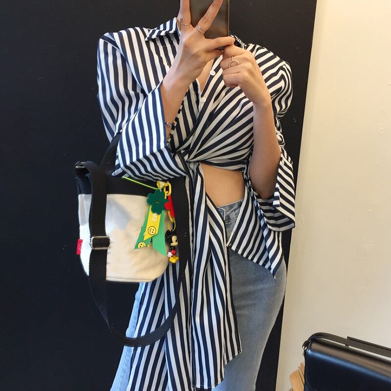 新品 バンド★ストライプシャツブラウス大人女子☆ ロング ⦿韓国 オルチャン K-pop アイドル ジャケット スーツ ワンピース カーディガン ニット フーディー トレーナー キャミソール スカート シャツ ブラウス 5A3077358