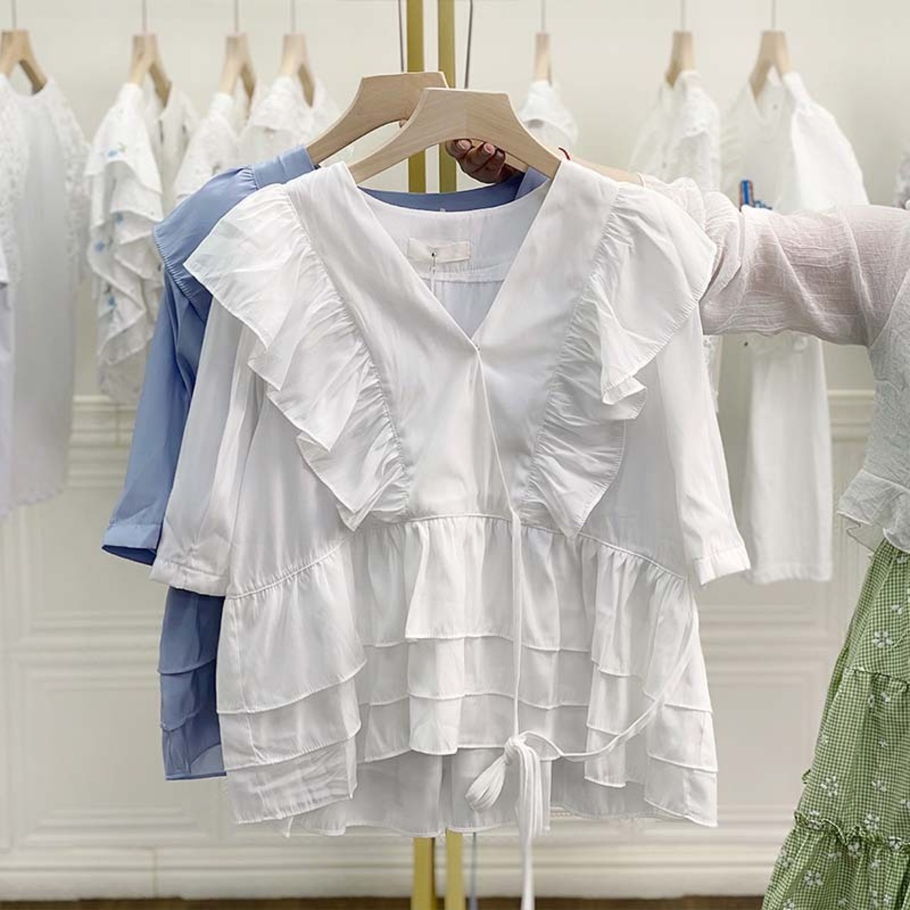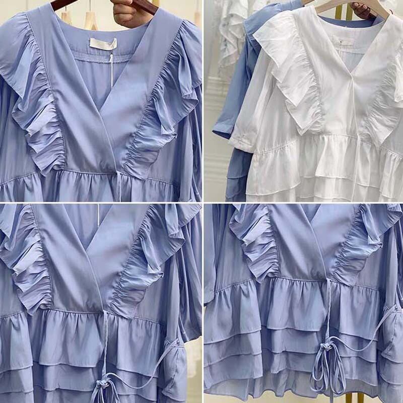 新品 Vネックプリーツカジュアルシャツブラウス ⦿韓国 オルチャン K-pop アイドル ジャケット スーツ ワンピース カーディガン ニット フーディー トレーナー キャミソール スカート シャツ ブラウス 5B4123692
