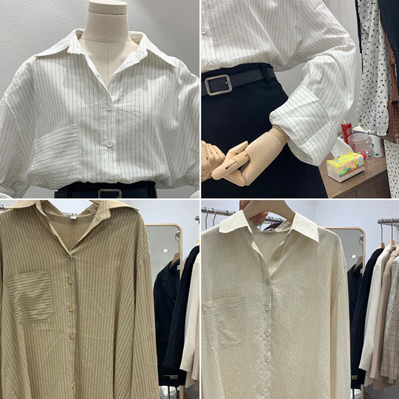新品 ♥カワイイ♥ストライプシャツブラウス ロング ⦿韓国 オルチャン K-pop アイドル ジャケット スーツ ワンピース カーディガン ニット フーディー トレーナー キャミソール スカート シャツ ブラウス 5B6596342