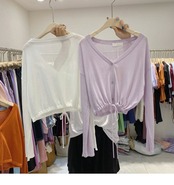 新品 サマーニットギャザーショートブラウス ロング 夏物 ⦿韓国 オルチャン K-pop アイドル ジャケット スーツ ワンピース カーディガン ニット フーディー トレーナー キャミソール スカート シャツ ブラウス 5B2047842